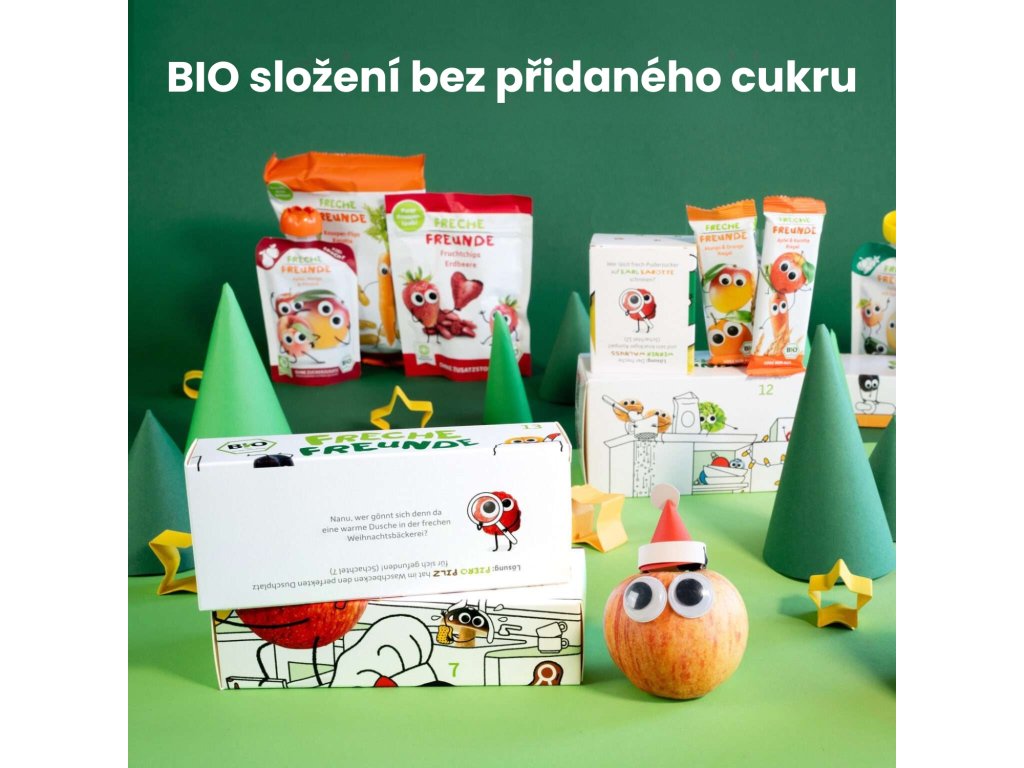 Čekání na Ježíška bude plné chutí a překvapení – bez čokolády, bez přidaného cukru a v BIO kvalitě. V okénkách děti najdou ovocné kapsičky, tyčinky, křupky, müsli kousky, ovocné chipsy i rozinky. Tradičně nebude chybět ani radost navíc – samolepky, tetovačky a vánoční tvoření.