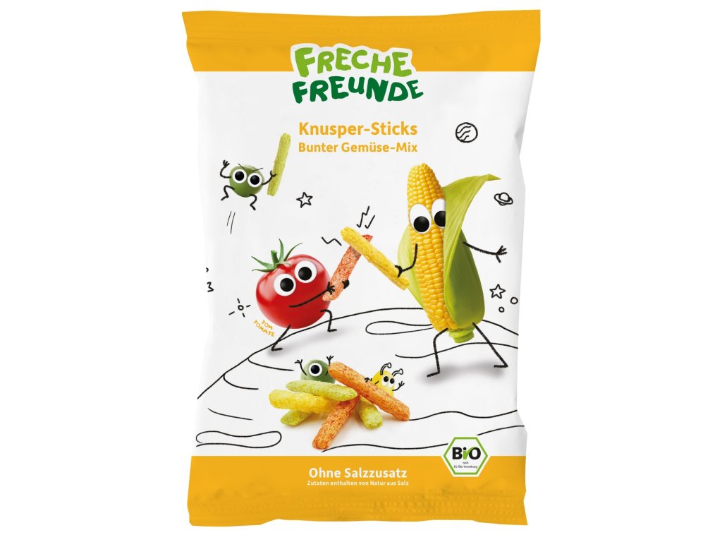 Německou značku Freche Freunde založili v roce 2010 Natacha a Alexander Neumannovi. Používají výhradně BIO suroviny a v jejich kapsičkách, tyčinkách či křupkách nenajdete žádný cukr, umělá barviva či dochucovadla. Díky hravým obalům budují u dětí pozitivní vztah k ovoci a zelenině. Freche Freunde nabízí produkty pro děti již od ukončeného 6. měsíce.