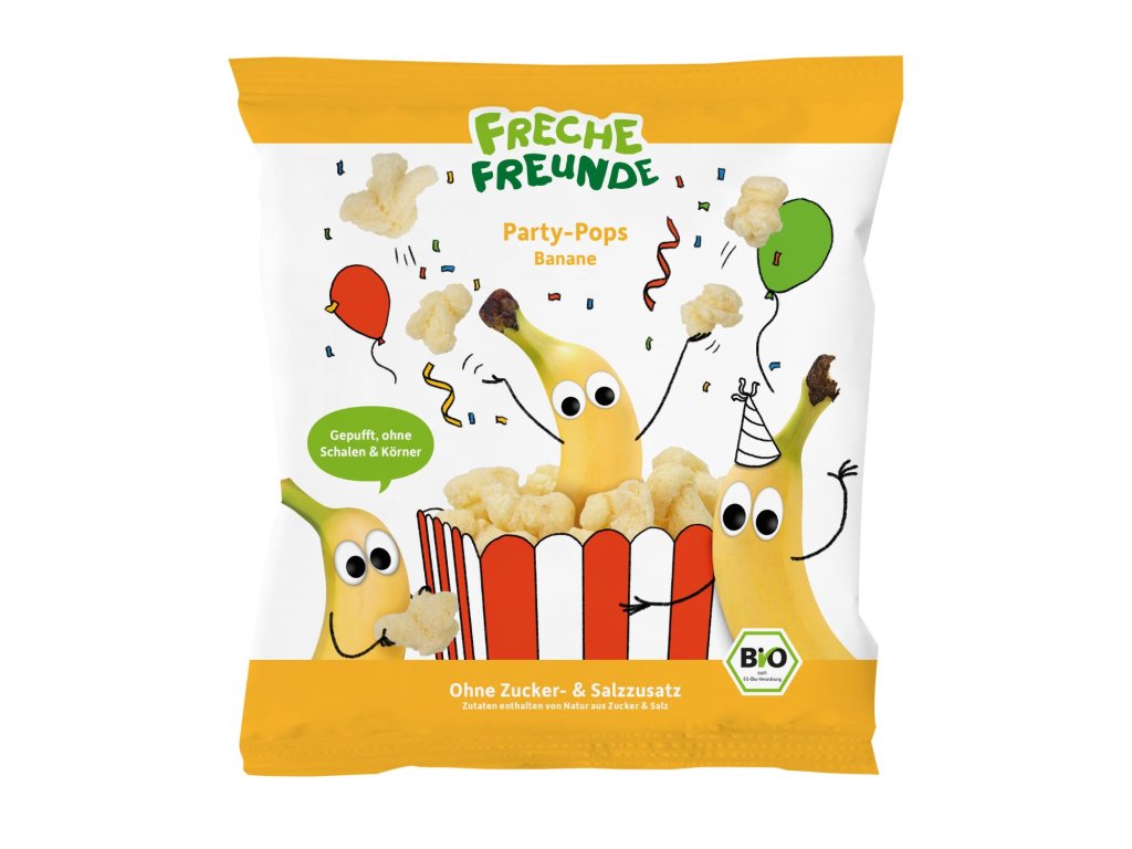 Nadýchaný a křupavý popcorn Freche Freunde si užijí děti již od ukončeného 12. měsíce. Na rozdíl od běžného popcornu se v něm nemohou objevit nepuklá kukuřičná zrnka či zbytky jejich slupek, takže nehrozí zaskočení. Nepřidává se žádný cukr, sladkou chuť popcornu dodávají pouze banány. Všechny použité suroviny jsou přirozeně bezlepkové a v BIO kvalitě.