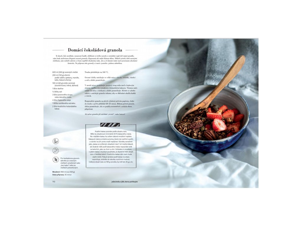 Kniha Karolíny Fourové, odbornice na výživu a kvalitu potravin a blogerky, vám pomůže pochopit základní principy stravování, představí jednotlivé složky výživy a jejich úkol v lidském organismu. Naučíte se správně nakupovat a dostanete odpověď na většinu otázek o jídle a potravinách, které vás kdy napadly. A abyste se v té zdravé stravě neztratili hned na začátku, najdete v knize i 40 autorčiných nejoblíbenějších receptů, které vám cestu usnadní.