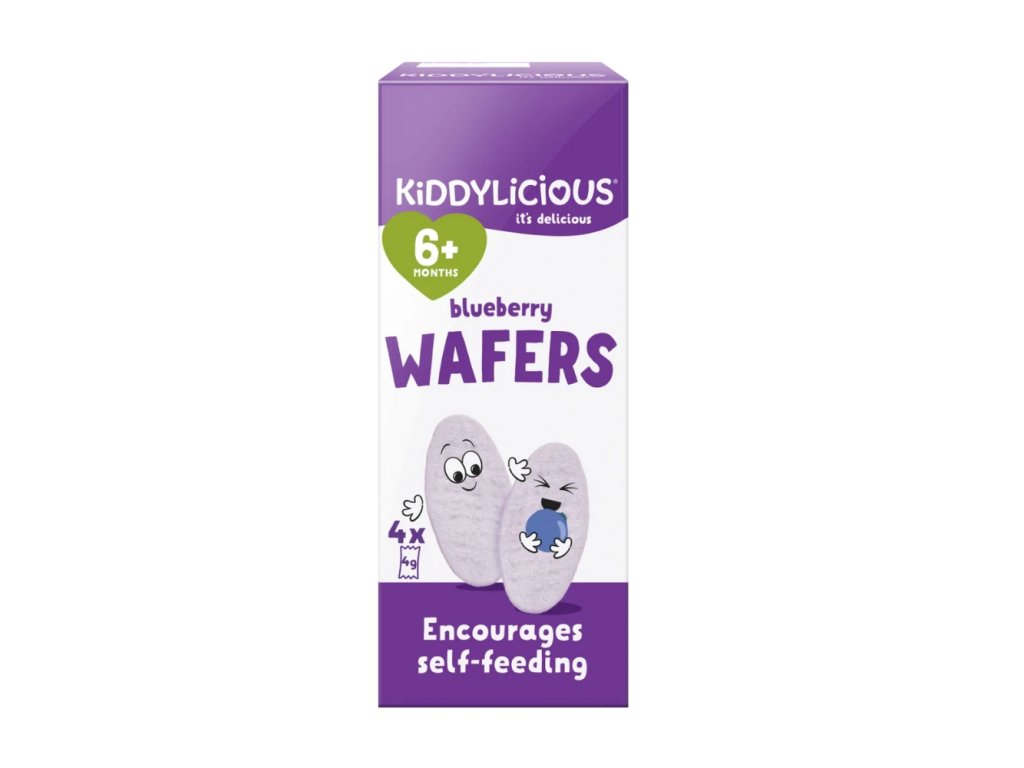 Rýžové oplatky Kiddylicious ochucené hroznovou šťávou a borůvkami jsou vhodnou svačinkou do ruky pro děti od ukončeného 6. měsíce. Mají ideální tvar a velikost do dětských ručiček. Díky hladké textuře nedrobí, ihned se rozpouští v ústech a uleví dásním od bolesti spojené s růstem zoubků. Neobsahují přidaný cukr, lepek, laktózu, vejce ani žádné umělé konzervanty, barviva či aromata. Základ tvoří mouka z jasmínové rýže chuť jim dodává hroznová šťáva, sušené borůvky a přírodní borůvkové aroma.