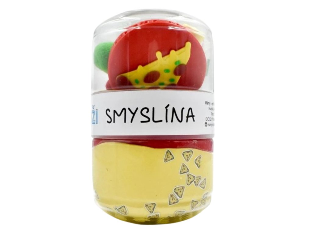Smyslína je hravá dvojdóza, která děti zabaví na dlouhé chvíle. V jedné části najdete tematické hračky, ve druhé modelovací hmotu Mamolínu. Smyslína funguje jako malý svět, který si děti mohou vzít kamkoli s sebou – na výlet, do vlaku nebo třeba do restaurace. Dóza se jednoduše rozšroubuje, děti se ponoří do tvoření, a rodiče si mezitím v klidu dopijí kávu.