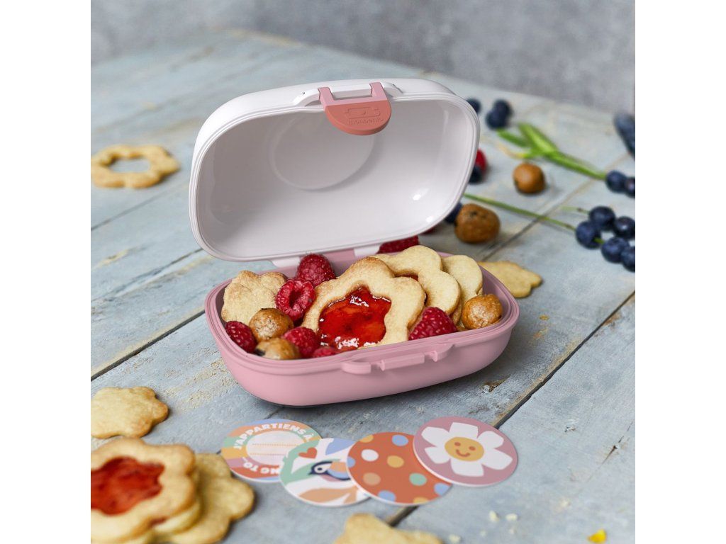 Svačinový box Monbento Gram má snadné otevírání, které zvládnou i malé dětské ruce. Díky kvalitnímu těsnění zůstane vše bezpečně uvnitř krabičky. Box je lehký a kompaktní, snadno se vejde do školní tašky i batůžku na trénink či výlet. Ve víku můžete měnit motivy a vytvořit si tak svůj originál. Součástí balení jsou 4 motivy, ale můžete použít třeba fotku, dětskou kresbu, vzkaz nebo jmenovku.