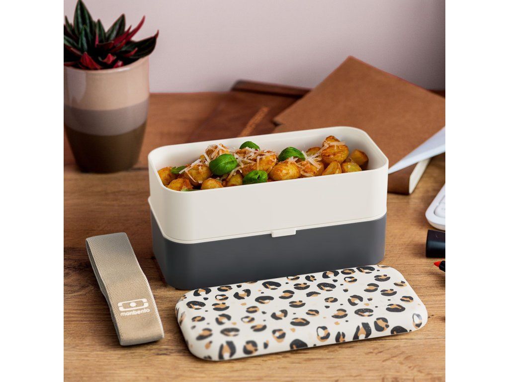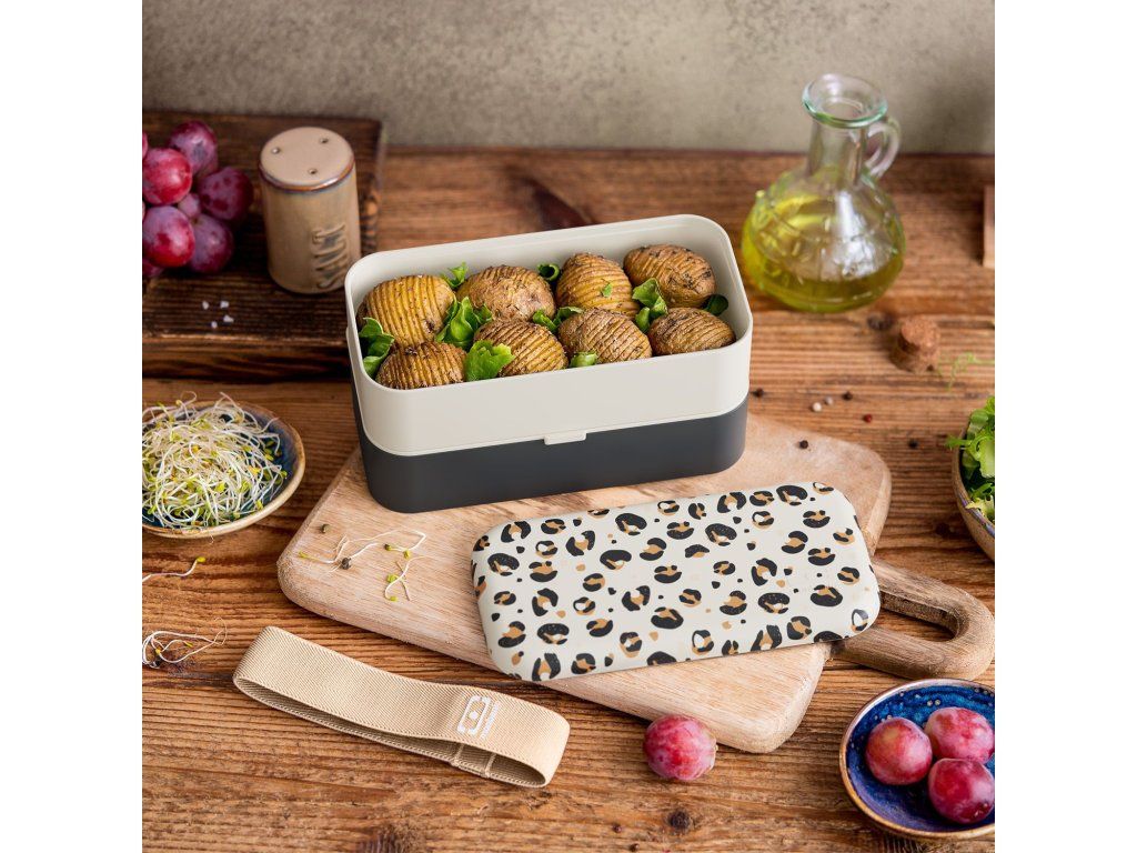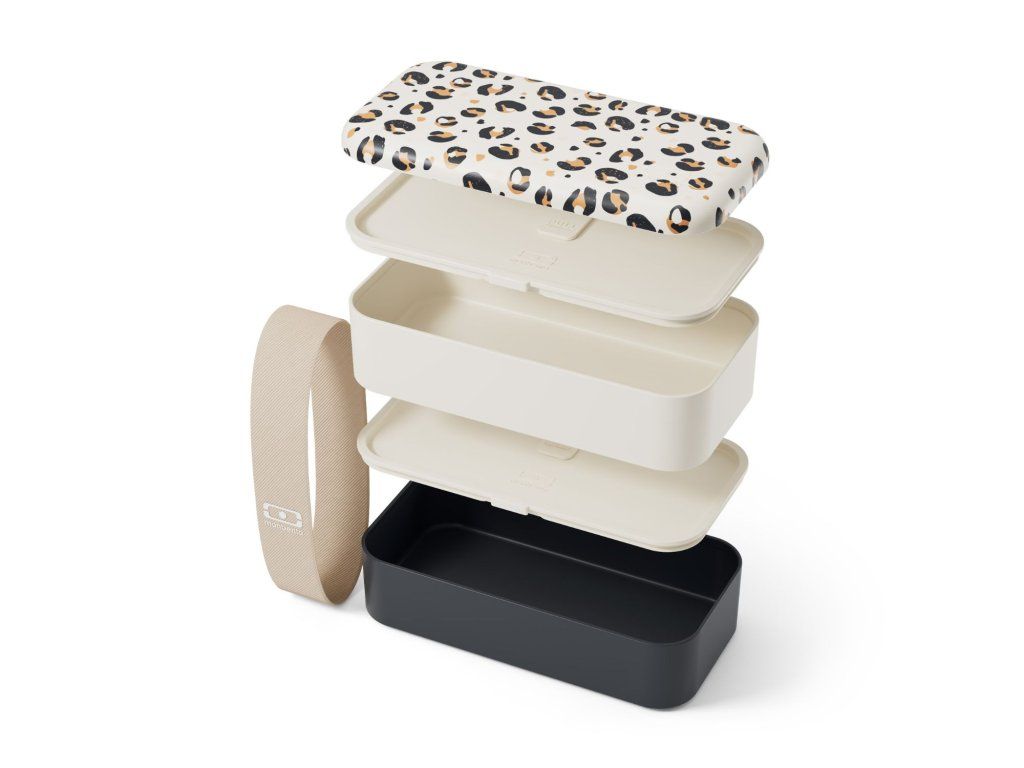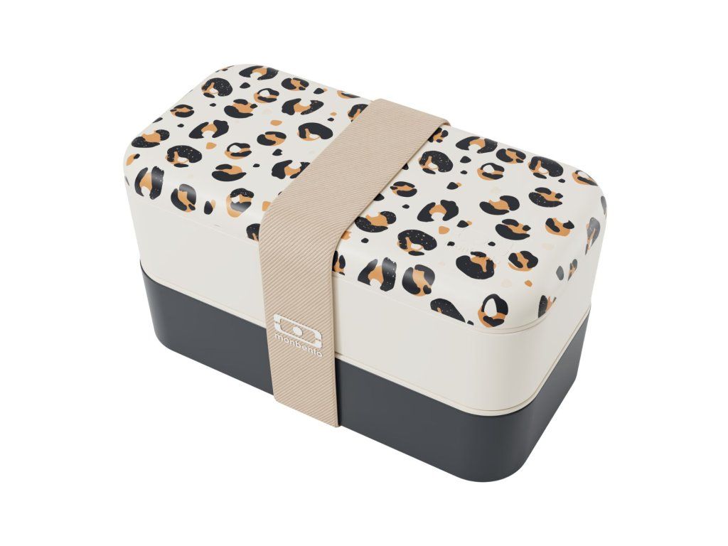 Stylový dvoupatrový box Monbento v nepřehlédnutélném leopardím vzoru se hodí do práce, školy i na víkendový výlet. Díky vzduchotěsným víčkům uchová jídlo déle čerstvé a gumička zajistí, že se vám nikdy nic nevylije. Box je vyrobený ve Francii a používají se pouze materiály bezpečné pro styk s potravinami.