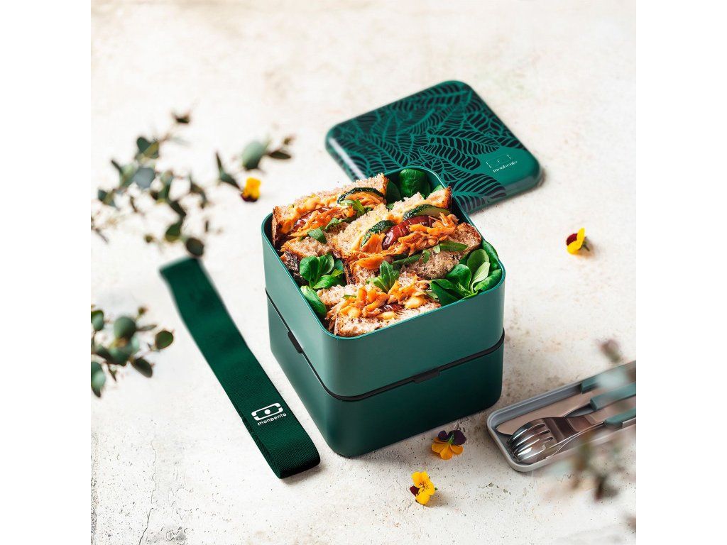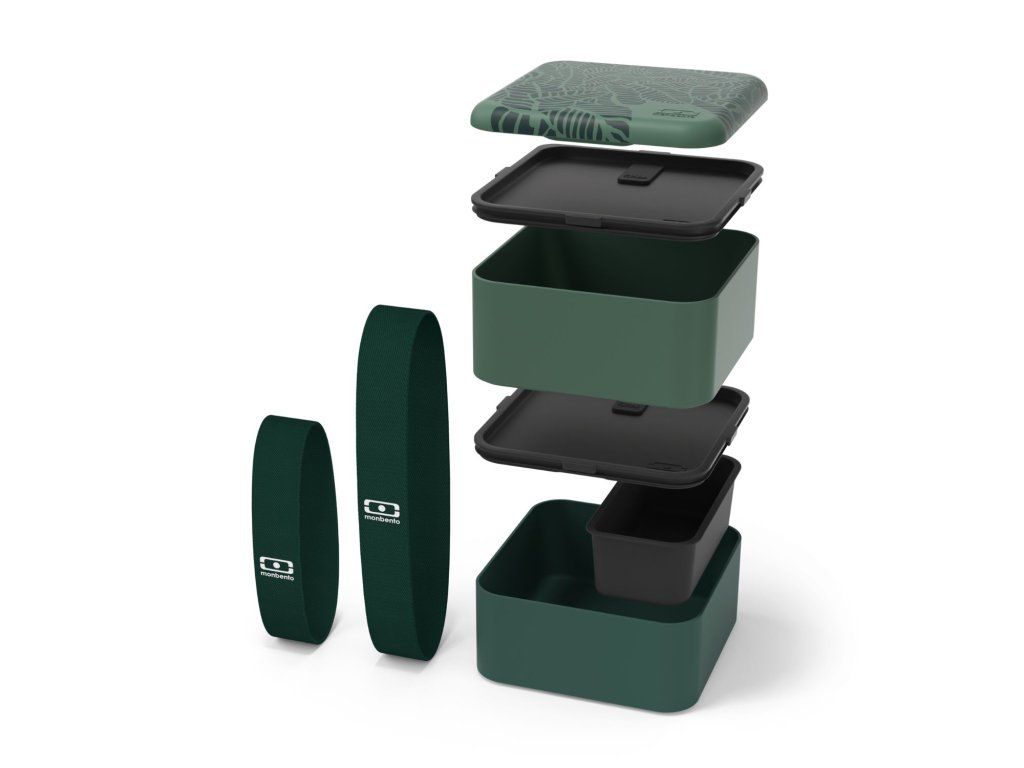 Stylový dvoupatrový čtvercový box Monbento v zelené barvě s motivy džungle se hodí do práce, školy i na víkendový výlet. Je větší než boxy z řady Original, krabičky mají celkový objem 1,7 litru. Díky vzduchotěsným víčkům uchová jídlo déle čerstvé a gumička zajistí, že se vám nikdy nic nevylije. Box je vyrobený ve Francii a používají se pouze materiály bezpečné pro styk s potravinami.