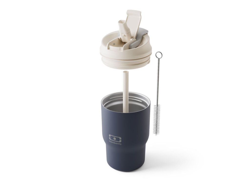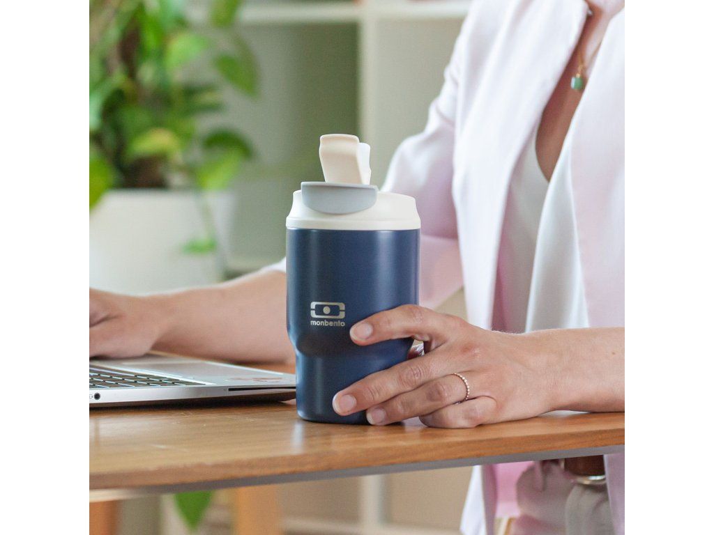 Tmavěmodrý termohrnek Monbento udrží vaši kávu, čaj nebo osvěžující ovocný fresh v perfektní teplotě. Má dvojité otevírání - s hubičkou pro teplé nápoje a s brčkem pro studené.
