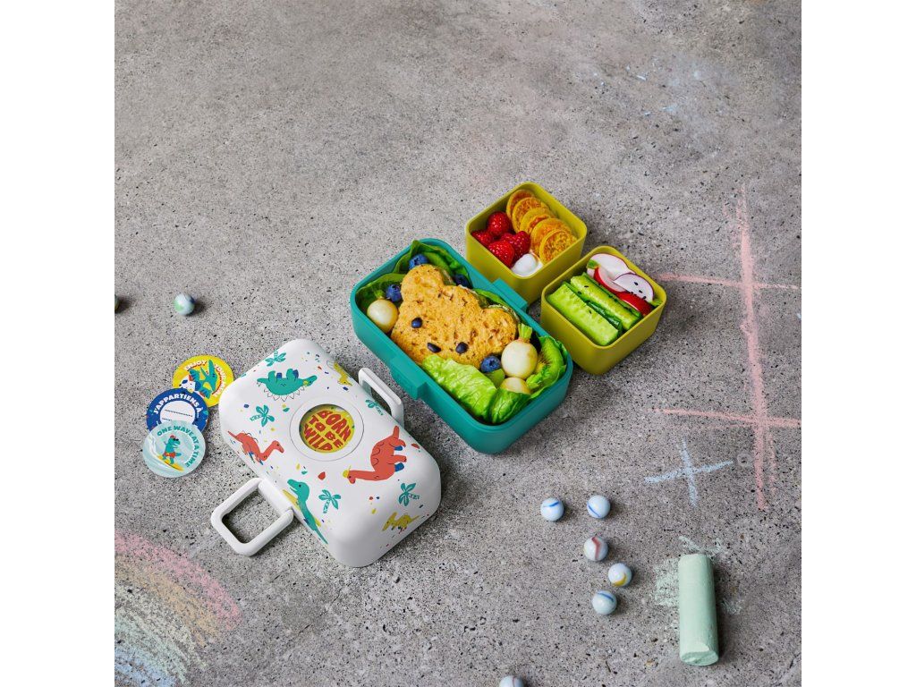 Velký box pro oběd na výlet nebo zásobu svačin na celý den. Monbento Tresor má snadné otevírání, které zvládnou i malé dětské ruce. Box má tři zcela samostatné krabičky - jednu velkou o objemu 500 ml a 2 malé o objemu 150 ml. Ve víku můžete měnit motivy a vytvořit si tak svůj originál. Součástí balení jsou 4 motivy, ale můžete použít třeba fotku, dětskou kresbu, vzkaz nebo jmenovku.