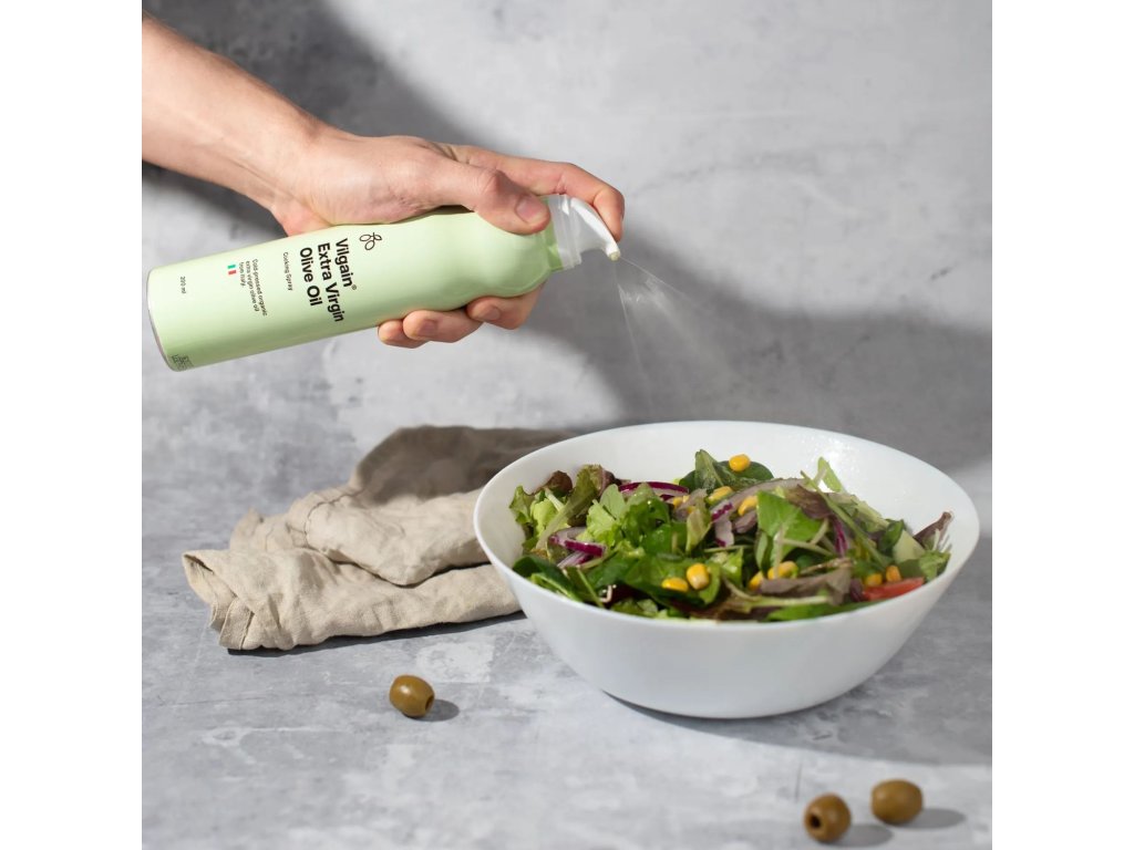 Vilgain Olivový olej ve spreji je 100% BIO extra panenský olej lisovaný za studena z pečlivě vybraných oliv pocházejících z Itálie. Zpracován je výhradně mechanicky, bez chemie, a díky tomu si zachovává vysoký obsah cenných bioaktivních látek. Má příjemně ovocnou chuť s pikantním dozvukem a jemnou nahořklostí – přesně tak, jak má kvalitní oliváč chutnat.