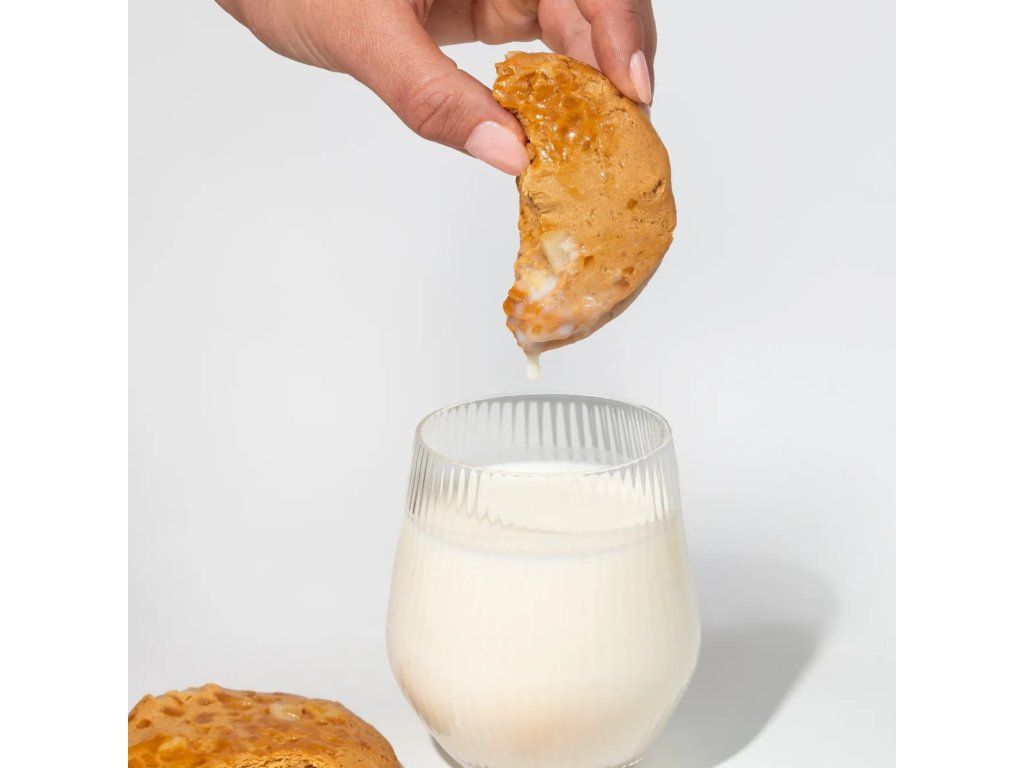 Tato proteinová sušenka je vyváženým zdrojem bílkovin, vlákniny i sacharidů. Obsahuje kvalitní mléčné proteiny s dobrou vstřebatelností a díky kombinaci surovin dokáže zasytit na delší dobu. Každá sušenka navíc dodá 20 g bílkovin a je přirozeně bezlepková, protože místo klasické mouky obsahuje kukuřičnou vlákninu.